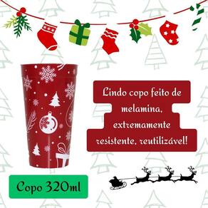 Este copo com estampa natalina é perfeito para trazer o espírito festivo para suas bebidas favoritas. Feito de melamina resistente, ele apresenta um design encantador com elementos clássicos do Natal, como flocos de neve, enfeites natalinos e árvores de Natal, tudo em uma cor vibrante que evocam a magia da temporada.