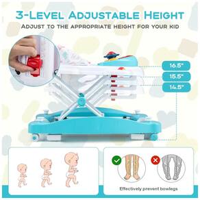 Ajuste da altura do nível de 3 níveis O andador para a menina do menino apresenta 3 níveis de ajuste de altura do assento para combinar com o crescimento e desenvolvimento do seu bebê durante diferentes estágios de caminhada