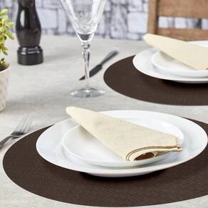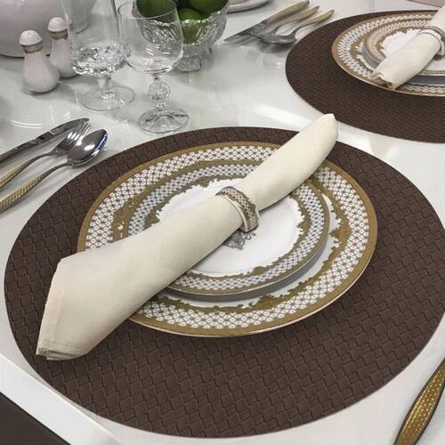 Além de proporcionar um excelente efeito visual à mesa, ele combina bem com diversos tipos de louças, mesas e ambientes. Possui gravação em relevo imitando couro trançado. Não retém resíduos de alimentos proporcionando praticidade para o dia a dia.