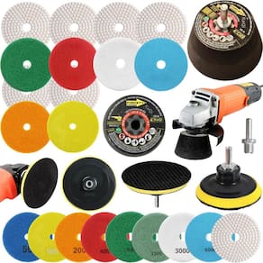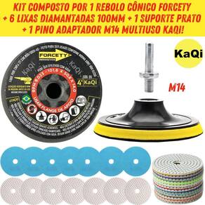 6 Lixas Grão 4 Pol. 100mm Diamantada + 1 Rebolo Cônico 45 Graus + 1 Disco Prato + 1 Pino M14 KaQi GRÃO: 50-100-200-400-400-800 Kit 6 Lixas Diamantadas Grão Disco 4 Polegadas 100mm KaQi + 1 Rebolo Grão 120 Copo Cônico 45 Graus 4 Polegadas M14 Forcety. + 1 Suporte Prato Disco 100mm M14 KaQi + 1 Pino Adaptador Multiuso Rosca Universal M14 KaQi. Para Desbastes, Polimentos, Acabamentos, Boleamentos, Lixamentos a Seco e Úmido. Ideal para profissionais e entusiastas de reformas e construção. Alta qualidade, resistência e desempenho superior. Transforme o acabamento das suas superfícies com o Kit 6 Lixas Grão 4 Pol. 100mm Diamantada + 1 Rebolo Cônico 45 Graus + 1 Disco Prato + 1 Pino M14 Desenvolvido para oferecer o melhor polimento e acabamento, é perfeito para quem busca resultados profissionais, tanto em pedras como granitos, mármores, cerâmicas, quanto ardósia, calcário, dekton, quartzo, porcelanato, pedra projetada, concreto, nanoglass, super nano, vidro e muito mais. Seu lixamento pode ser a seco e a úmido, o que proporciona um processo mais rápido, sem gerar calor excessivo. O Rebolo Copo Cônico 10x5cm Grão 120 Forcety é ideal para desbastes, retificações, boleamentos e acabamentos. Projetado para oferecer eficiência, durabilidade, confiabilidade e resultados excepcionais, é perfeito para profissionais e entusiastas de reformas e construções. Não à toa, é o rebolo número 1 das marmorarias, azulejistas e oficinas de todo Brasil O Disco 100mm e o pino adaptador M14 podem ser utilizados em conjunto com as lixas e com o rebolo. Com sistema de gruda e desgruda fácil, podem utilizadas em lixadeiras, esmerilhadeiras, politrizes, furadeiras, parafusadeiras. Permite, assim, ampliar a gama de usos do kit. Principais características: 1. Durabilidade extra, alta resistência ao desgaste, longa vida útil e desempenho, além de excelente performance em diversos tipos de materiais. 2. Acabamento impecável no desbaste e polimento de superfícies de pedra, mármore, calcário, ardósia, porcelanato e outros, sem deixar manchas ou marcas indesejadas. Pode ser trabalhada em superfícies claras ou escuras. Oferece uma remoção eficiente de material e um acabamento uniforme. 3. Versatilidade no uso com diversas ferramentas, já que pode ser Utilizado em esmerilhadeiras, lixadeiras, politrizes e furadeiras elétricas. 4. Eficiência de montagem, uma vez que possui sistema de fixação rápido. Basta encostar a lixa no suporte do disco para grudar, e, para remover, é só puxar na direção contrária. Conteúdo da embalagem: 6 Lixas DÁgua 4 Pol. 100mm Disco Diamantado KaQi GRÃO. + 1 Rebolo Grão 120 Copo Cônico 45 Graus 4 Polegadas M14 Forcety. + 1 Suporte Prato Disco 100mm M14 KaQi + 1 Pino Adaptador Multiuso Rosca Universal M14 KaQi. Especificações Lixas: Diâmetro: 100mm 4 Polegadas . Furo central: 1,3cm diâmetro. Espessura 1 unidade: 0,4cm. Maleabilidade: flexível. Lixamentos: seco e úmido. RPM: ideal entre 3000 a 5000 rotações por minuto. Material da lixa: diamante sintético industrial e resina premium. Costado: tipo vellcro. Fácil de fixar e remover. Especificações Rebolo: Trabalho: a seco ou refrigerado com água. Diâmetro: 4 Polegadas 100mm 10,16cm x altura 5,08cm. Velocidade: 9023RPM. Rosca: M14. Material: Carbeto de Silício SiC com diamantes. Feito para ser conforme norma ABNT NBR 15230. Especificações Prato Suporte: Diâmetro do disco: 100mm 4 Polegadas . Modelo do disco: M14 com superfície tipo vellcro. RPM: até 12000. Rosca: padrão M14 14mm . Especificações Pino Adaptador M14: Para Furadeira Parafusadeiras, Politrizes, Lixadeiras e Esmerilhadeiras. Fixa em discos pratos M14 para uso com lixas, boinas, espumas de polir, entre outros acessórios. Rosca: M14 14mm . Pino largura: 8mm. Altura total: 4,4cm.