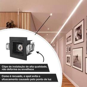 Um spot mini recuado com LED integrado 3000K é uma luminária de alta eficiência e design moderno, ideal para ambientes residenciais e comerciais. Com um acabamento discreto e elegante, ele proporciona uma iluminação suave e acolhedora, com temperatura de cor de 3000K, que cria um ambiente confortável e convidativo.