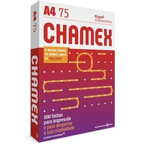 Chamex A4 75g garante ótima performance em todo tipo de atividade, como criar, escrever, imprimir e reproduzir. Com superfície resistente, corte perfeito e equilibrada absorção, permite melhor deslizamento do papel na impressora e evita desperdício de tinta. É produzido a partir do cultivo de eucalipto 100% renovável e as fibras são tratadas para obter o mais elevado grau de brancura.