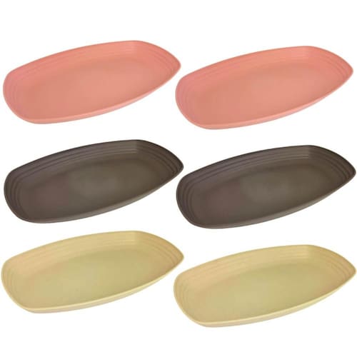 Garantia: 90 dias / Peso total: 660g / Cor predominante: colorido / Ref: 7798139624930; Dimensões de cada travessa: 29cm (C) x 18cm (L) x 3cm (A); Dimensões área de uso de cada travessa: 24cm; Materiais: polipropileno e bambu ecológico; Conteúdo: 6 travessas retangulares; Obs.: o produto é enviado de forma diversa, conforme cores disponíveis em estoque. Não é possível escolha de cor, variando em bege, lilás e cinza.
