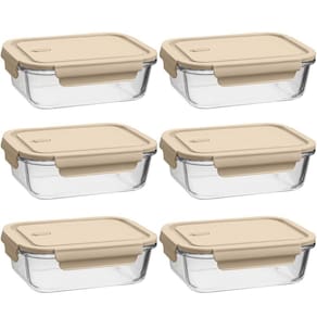 6 Potes Herméticos de Vidro Borossilicato 410ml UZ Retangulares Pequenos Capuccino Porta Mantimentos