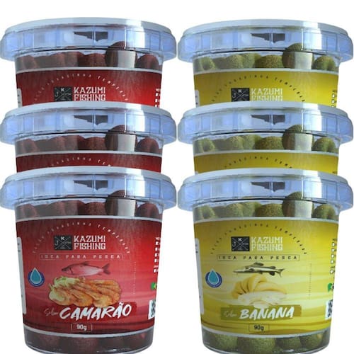Kit Com 6 Ração Furadinha Kazumi 90gr Pesca Essência Camarão E Banana Na Pinga