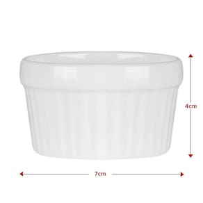 6 Ramekin de Porcelana Classic Branco 6cm x 4cm Lyor Sirva seus molhos e suas sobremesas com muito mais estilo com o Ramequim de Porcelana Esse lindo ramequim é feito todo em porcelana branca, com o tradicional relevo de listras verticais dessas peças. Com esse lindo Ramequim de Porcelana Branca as suas refeições ficam ainda mais chiques e apetitosas