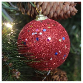 60 Bolas Enfeite Natalino Árvore Natal Vermelho Glitter 70mm