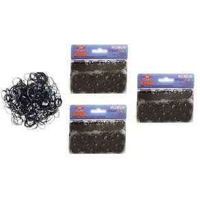 Contém: 5 pacotes com 120 unidades cada de elástico xuxinha de silicone preto tamanho pequeno e grande