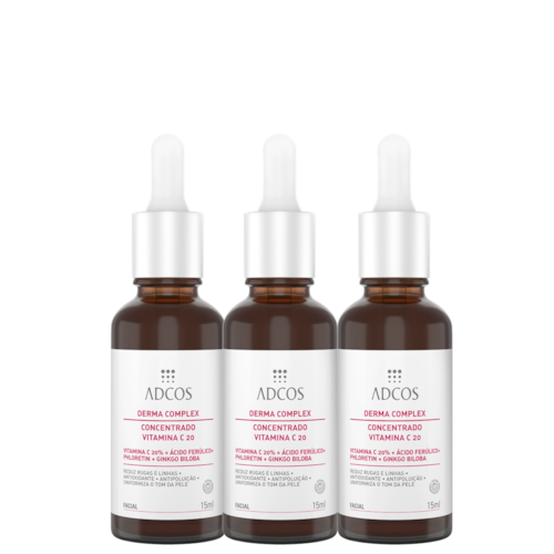 Kit com três séruns Redutor de Linhas para todos os tipos de pele. Kit Adcos Concentrado Vitaina C combate o envelhecimento precoce, preenchendo rugas e linhas finas.
