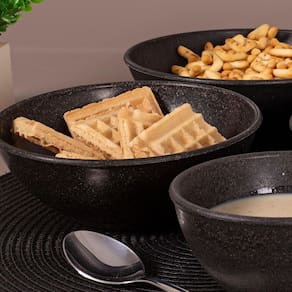Tigela fabricada com matéria-prima sustentável, desenvolvida por meio da mistura entre 69% de materiais provenientes de fontes renováveis madeira + Polietileno Verde Im green tm e uma parcela reduzida de polipropileno. É a mais pura versatilidade que um produto pode lhe oferecer. Fundas e resistentes tem infinitas possibilidades de uso: servir pipoca, preparar uma bela salada, acomodar pães para mesa do café da manhã.