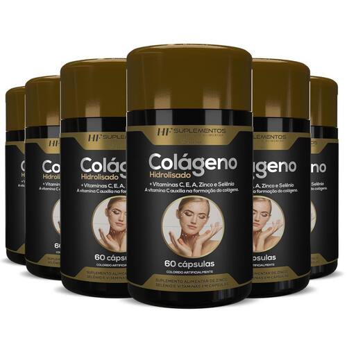 Através deste anúncio, você está adquirindo 6 seis potes de 6x colageno hidrolisado + vitaminas 60caps hf suplementos.