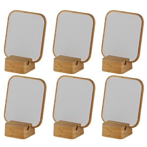 ESPECIFICAÇÕES TÉCNICAS: - Nossa loja: Ar15 Sport- Marca: OU- Modelo: Aura- Material: Bambu e Vidro- Cantos arredondados e ergonômicos- Espelho com moldura e base de apoio em bambu- Removível da base 02 ângulos de posicionamento do espelho- Material sustentável- Moderno e minimalista- Dimensões: 10cm x 14cm x 18cm- Peso total: 400 gramas ITENS INCLUSOS: - 06 Espelho de Bancada Ou Bambu Linha Aura Observações: de 03 meses mediante defeitos de fábrica. Imagens meramente ilustrativas. A tonalidade da cor do produto pode variar de acordo com a tela em que estão sendo observadas as fotos. Marca: Não Informado