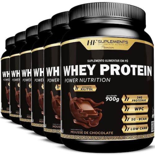 Através deste anúncio, você está adquirindo 6 seis potes de 6x whey protein power nutrition mousse de chocolate 900g hf suplementos