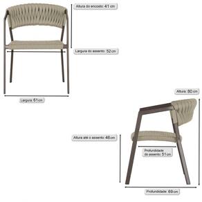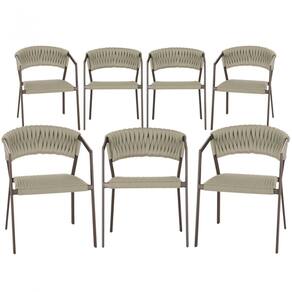 7 Cadeiras Atenas Tricô Náutico e Alumínio com Proteção UV para Varanda, Cozinha, Área, Jardim - Pintura Marrom - Bege