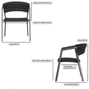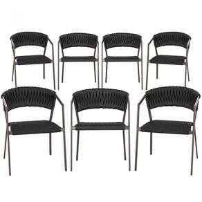 7 Cadeiras Atenas Tricô Náutico e Alumínio com Proteção UV para Varanda, Cozinha, Área, Jardim - Pintura Marrom - Preto