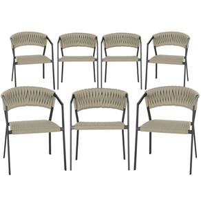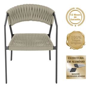 7 Cadeiras Atenas Tricô Náutico e Alumínio com Proteção UV para Varanda, Cozinha, Área, Jardim - Pintura Preta - Bege