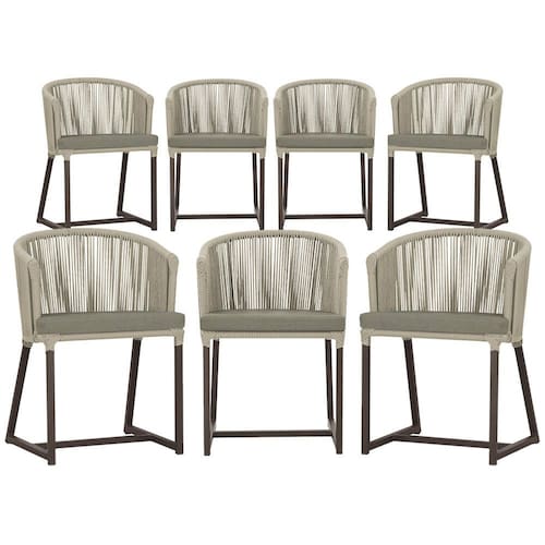 Combinando estilo e resistência, esta cadeira traz o melhor do design contemporâneo em alumínio com micro pintura e acabamento em corda náutica. O estofado impermeável completa o conforto e a funcionalidade, tornando-a ideal para ambientes externos e internos.