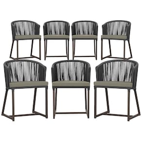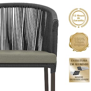Combinando estilo e resistência, esta cadeira traz o melhor do design contemporâneo em alumínio com micro pintura e acabamento em corda náutica. O estofado impermeável completa o conforto e a funcionalidade, tornando-a ideal para ambientes externos e internos.