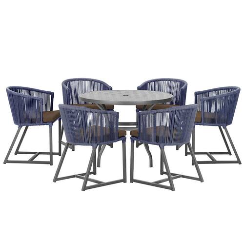 7 Cadeiras de Jantar Área Noronha em Alumínio - Azul