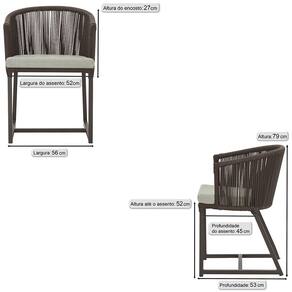Combinando estilo e resistência, esta cadeira traz o melhor do design contemporâneo em alumínio com micro pintura e acabamento em corda náutica. O estofado impermeável completa o conforto e a funcionalidade, tornando-a ideal para ambientes externos e internos.