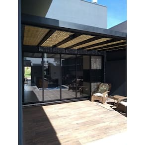 Estique o forro sobre o pergolado e grampei, pregue ou parafuse o mesmo sobre as pérgolas, corte o excesso e aplique a cobertura de sua preferência (telha sanduiche, vidro, policarbonato, etc)