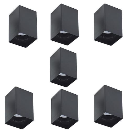 Spot sobrepor recuado direcionável quadrado preto, peça ideal para destacar seu ambiente. Possui sistema click, no qual não é necessário retirar o spot para troca de lâmpada.-- Neste kit contém 7 spot -- Descrição:- Material: Policarbonato- Cor: Preto- Dimensões: Comprimento: 8 cm Largura: 8 cm Altura: 12,5 cm- Tipo de lâmpada: MR16 LED- Soquete: GU10- Potência máxima: 40W- Tensão: 100V - 240V- Grau de Proteção: IP20- Frequência: 50/60HZ- Direcionável- Acompanha soquete Gu10 Não acompanha lâmpada