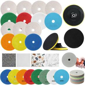 7 X Lixas 4 Pol. 100mm Diamantada + 1 Disco Prato Suporte Grão Polir Lixadeira Granito Mármore KaQi