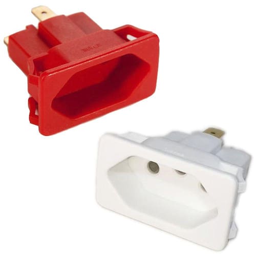 Tomada Margirius 3 pinos 10A modelo TPA2-3, para painéis e aparelhos