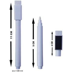 75 Canetas Giz Líquido Branca para Quadro Preto com Apagador e Imã Cor: Branco As canetas podem ser usadas em quadro preto, em vidros e em outras superfícies lisas, na ponta da tampa encontra-se uma espuma para apagar e na lateral um imã que permite que grudem em superfícies metálicas. Recomendamos apagar somente após a tinta estar totalmente seca, caso necessário utilizar um pano úmido.