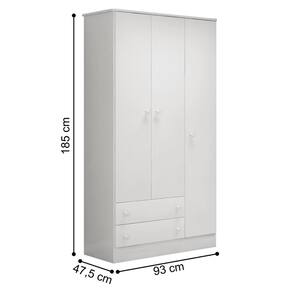O Guarda Roupa é feito em MDP, contém três portas e duas gavetas com corrediças metálicas.