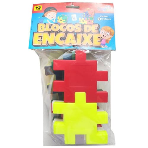 -Contém - 08 und - Bloco de encaixe - Mini ToysBlocos com cores super vivasVárias formas de encaixe, irá estimular a coordenação motora e lógica da criança.Dimensões aproximadas de cada bloco - A x L x P: 10 cm x 10 cm x 1,5 cmCertificado Inmetro: 010336/2022Composição: Polipropileno e polietilenoImagens meramente ilustrativas.
