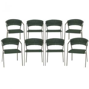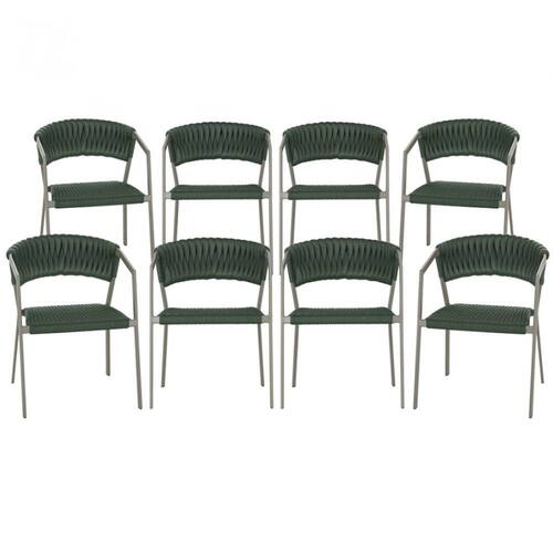 8 Cadeiras Atenas Tricô Náutico E Alumínio Com Proteção Uv Para Varanda, Cozinha, Área, Jardim - Verde