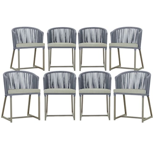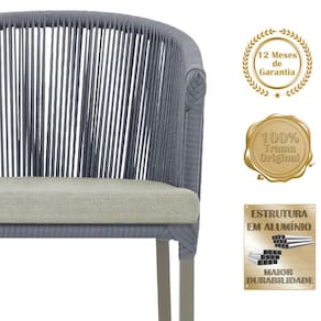 Combinando estilo e resistência, esta cadeira traz o melhor do design contemporâneo em alumínio com micro pintura e acabamento em corda náutica. O estofado impermeável completa o conforto e a funcionalidade, tornando-a ideal para ambientes externos e internos.