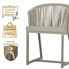 Combinando estilo e resistência, esta cadeira traz o melhor do design contemporâneo em alumínio com micro pintura e acabamento em corda náutica. O estofado impermeável completa o conforto e a funcionalidade, tornando-a ideal para ambientes externos e internos.