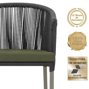 Combinando estilo e resistência, esta cadeira traz o melhor do design contemporâneo em alumínio com micro pintura e acabamento em corda náutica. O estofado impermeável completa o conforto e a funcionalidade, tornando-a ideal para ambientes externos e internos.