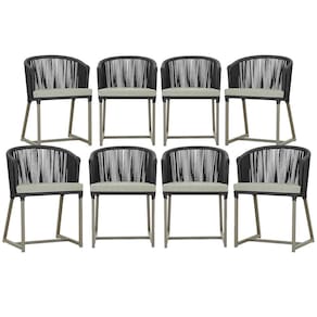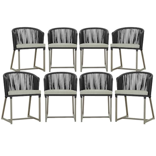 Combinando estilo e resistência, esta cadeira traz o melhor do design contemporâneo em alumínio com micro pintura e acabamento em corda náutica. O estofado impermeável completa o conforto e a funcionalidade, tornando-a ideal para ambientes externos e internos.