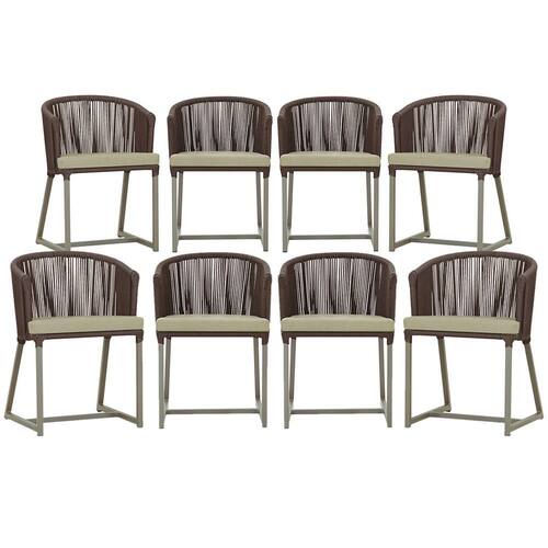 Combinando estilo e resistência, esta cadeira traz o melhor do design contemporâneo em alumínio com micro pintura e acabamento em corda náutica. O estofado impermeável completa o conforto e a funcionalidade, tornando-a ideal para ambientes externos e internos.