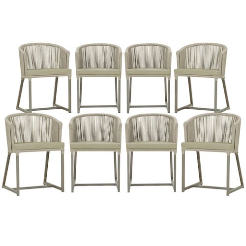 Combinando estilo e resistência, esta cadeira traz o melhor do design contemporâneo em alumínio com micro pintura e acabamento em corda náutica. O estofado impermeável completa o conforto e a funcionalidade, tornando-a ideal para ambientes externos e internos.