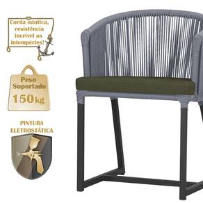 Combinando estilo e resistência, esta cadeira traz o melhor do design contemporâneo em alumínio com micro pintura e acabamento em corda náutica. O estofado impermeável completa o conforto e a funcionalidade, tornando-a ideal para ambientes externos e internos.