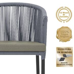 Combinando estilo e resistência, esta cadeira traz o melhor do design contemporâneo em alumínio com micro pintura e acabamento em corda náutica. O estofado impermeável completa o conforto e a funcionalidade, tornando-a ideal para ambientes externos e internos.