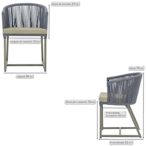 Combinando estilo e resistencia, esta cadeira traz o melhor do design contemporaneo em aluminio com micro pintura e acabamento em corda nautica. O estofado impermeavel completa o conforto e a funcionalidade, tornando-a ideal para ambientes externos e internos.