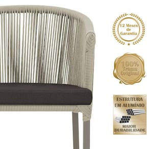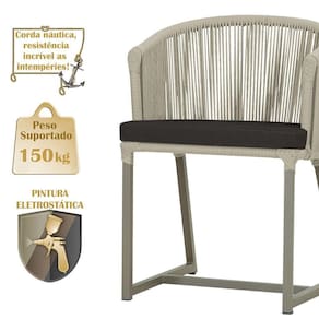 Combinando estilo e resistencia, esta cadeira traz o melhor do design contemporaneo em aluminio com micro pintura e acabamento em corda nautica. O estofado impermeavel completa o conforto e a funcionalidade, tornando-a ideal para ambientes externos e internos.