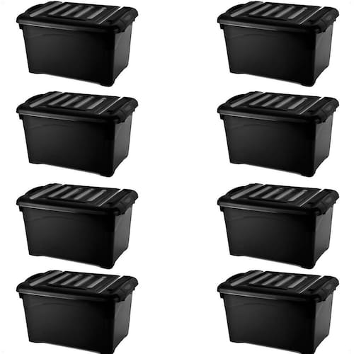 8 caixas organizadoras 25 litros preta com travas e rodinhas 8 caixas organizadoras 25l black com travas e rodinhas