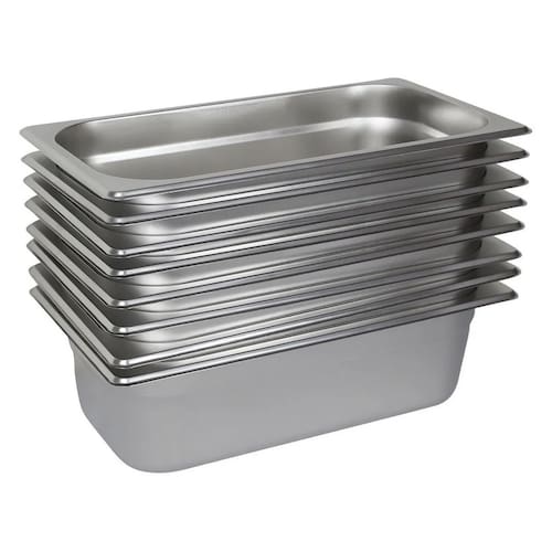Kit com 8 cubas GN 1/9 de 100mm. Ideal para porções médias de ingredientes em buffets com alta variedade.