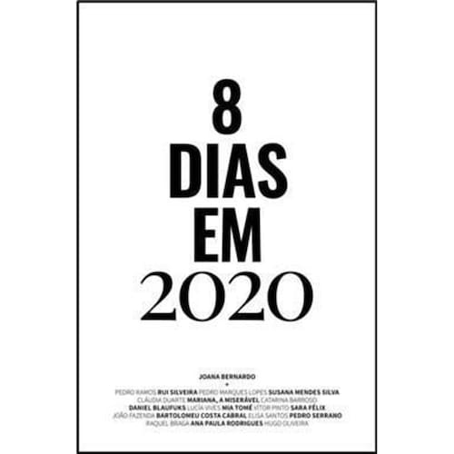 8 Dias em 2020 é um livro que conta a história de 2020 através dos olhos de médicos, arquitetos, artistas visuais, jornalistas, estudantes, profissionais das artes do espetáculo e muitos outros. Esta obra é um retrato do ano que ficou marcado pela doença e pelo confinamento, mas é também uma compilação de histórias íntimas e de episódios quotidianos vividos por duas dezenas de pessoas.