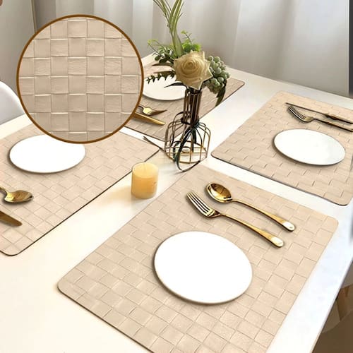 Esse Jogo Americano possui lindo desenho em relevo acentuado proporcionando um excelente efeito visual à mesa e combina com diversos tipos de louças e ambientes. Feito com material de alto padrão de qualidade, sua gravação imita costuras com perfeição, mas ao mesmo tempo ele não retém resíduos de alimentos e é muito fácil de limpar proporcionando praticidade para o dia a dia.