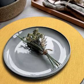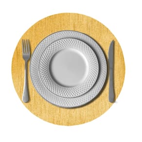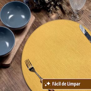 8 Jogo Americano Redondo Juta Amarelo Impermeável Pvc