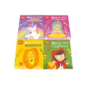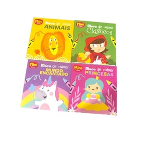 Contém: 4 unidades Livro Infantil Colorir Tamanho aproximado: 10cm x 10cm Editora: Todolivro Distribuidora Autor: Karin Elizabeth Rees de Azevedo Páginas: 48 em cada Faixa Etária: A partir de 3 anos Formato: Brochura Temas: Mundo encantado, Princesas, Clássicos, Animais, Carros, Animais da Fazenda, Dinossauros e Aventuras Especificações: - Autor: ; - Capa; - Brochura com miolo colado; - Numero de páginas; - Folhas; - Detalhe; - Acompanha: ; - Indicação de idade: A partir de anos;