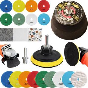 8 Lixas Grão 4 Pol. 100mm Diamantada + 1 Rebolo Cônico 45 Graus + 1 Disco Prato + 1 Pino M14 KaQi GRÃO: 100-200x4-400-800-1500 Kit 8 Lixas Diamantadas Grão Disco 4 Polegadas 100mm KaQi + 1 Rebolo Grão 120 Copo Cônico 45 Graus 4 Polegadas M14 Forcety. + 1 Suporte Prato Disco 100mm M14 KaQi + 1 Pino Adaptador Multiuso Rosca Universal M14 KaQi. Para Desbastes, Polimentos, Acabamentos, Boleamentos, Lixamentos a Seco e Úmido. Ideal para profissionais e entusiastas de reformas e construção. Transforme o acabamento das suas superfícies com o Kit 8 Lixas Grão 4 Pol. 100mm Diamantada + 1 Rebolo Cônico 45 Graus + 1 Disco Prato + 1 Pino M14 Desenvolvido para oferecer o melhor polimento e acabamento, é perfeito para quem busca resultados profissionais, tanto em pedras como granitos, mármores, cerâmicas, quanto ardósia, calcário, dekton, quartzo, porcelanato, pedra projetada, concreto, nanoglass, super nano, vidro e muito mais. Seu lixamento pode ser a seco e a úmido, o que proporciona um processo mais rápido, sem gerar calor excessivo. Assim, é possível garantir um resultado sem manchas ou falhas, e ainda favorece um efeito brilho d'água incrível O Rebolo Copo Cônico 10x5cm Grão 120 Forcety é ideal para desbastes, retificações, boleamentos e acabamentos. Projetado para oferecer eficiência, durabilidade, confiabilidade e resultados excepcionais, é perfeito para profissionais e entusiastas de reformas e construções. Não à toa, é o rebolo número 1 das marmorarias, azulejistas e oficinas de todo Brasil O Disco 100mm e o pino adaptador M14 podem ser utilizados em conjunto com as lixas e com o rebolo. Com sistema de gruda e desgruda fácil, podem utilizadas em lixadeiras, esmerilhadeiras, politrizes, furadeiras, parafusadeiras. Permite, assim, ampliar a gama de usos do kit. Principais características: 1. Durabilidade extra, alta resistência ao desgaste, longa vida útil e desempenho, além de excelente performance em diversos tipos de materiais. 2. Acabamento impecável no desbaste e polimento de superfícies de pedra, mármore, calcário, ardósia, porcelanato e outros, sem deixar manchas ou marcas indesejadas. Pode ser trabalhada em superfícies claras ou escuras. Oferece uma remoção eficiente de material e um acabamento uniforme. 3. Versatilidade no uso com diversas ferramentas, já que pode ser Utilizado em esmerilhadeiras, lixadeiras, politrizes e furadeiras elétricas. 4. Eficiência de montagem, uma vez que possui sistema de fixação rápido. Basta encostar a lixa no suporte do disco para grudar, e, para remover, é só puxar na direção contrária. Conteúdo da embalagem: 8 Lixas DÁgua 4 Pol. 100mm Disco Diamantado KaQi GRÃO. + 1 Rebolo Grão 120 Copo Cônico 45 Graus 4 Polegadas M14 Forcety. + 1 Suporte Prato Disco 100mm M14 KaQi + 1 Pino Adaptador Multiuso Rosca Universal M14 KaQi. Especificações Lixas: Diâmetro: 100mm 4 Polegadas . Furo central: 1,3cm diâmetro. Espessura 1 unidade: 0,4cm. Maleabilidade: flexível. Lixamentos: seco e úmido. RPM: ideal entre 3000 a 5000 rotações por minuto. Material da lixa: diamante sintético industrial e resina premium. Costado: tipo vellcro. Fácil de fixar e remover. Especificações Rebolo: Trabalho: a seco ou refrigerado com água. Diâmetro: 4 Polegadas 100mm 10,16cm x altura 5,08cm. Velocidade: 9023RPM. Rosca: M14. Material: Carbeto de Silício SiC com diamantes. Feito para ser conforme norma ABNT NBR 15230. Especificações Prato Suporte: Diâmetro do disco: 100mm 4 Polegadas . Modelo do disco: M14 com superfície tipo vellcro. RPM: até 12000. Rosca: padrão M14 14mm . Especificações Pino Adaptador M14: Para Furadeira Parafusadeiras, Politrizes, Lixadeiras e Esmerilhadeiras. Fixa em discos pratos M14 para uso com lixas, boinas, espumas de polir, entre outros acessórios. Rosca: M14 14mm . Pino largura: 8mm. Altura: 4,4cm.
