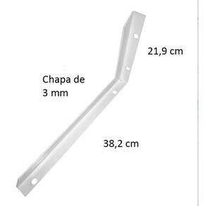 Você tem ideia nos inúmeros lugares que pode utilizar uma mão francesa A mão francesa pode ser utilizada em prateleiras, mesas, suportes, bancadas, vidros, entre outros. Nossas mãos francesas são muito resistentes, aguentando até 50 kg por suporte. Acompanha 16 dezesseis parafusos e 16 dezesseis buchas Nº8 por suporte. Informações Técnicas: Cor: Branca Resistencia: até 50 kg por suporte Dimensão: 38,2cm x 21,9cm Espessura da Chapa: 3mm OBS: Recomenda-se espaçamento máximo entre os suportes de 50cm. Inclui no kit: - 8x Mão francesa Suporte - 16x Parafusos 5,0 x 40mm - 16x Buchas 8mm Ean: 7891230022299